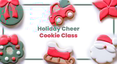 🎅🏻 Get on Santa’s Sweets list in my Holiday Cheer Cookie class! “Yule” want to hurry – these tickets will sell faster than Rudolf takin’ off from a roof!